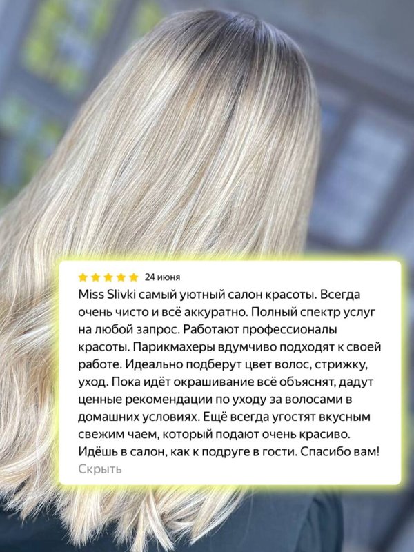 Что такое привлекательность? В салоне красоты MISS SLIVKI мы верим, что это прежде всего радость и легкость! К сожалению, для многих взрослых людей, которые заняты карьерой и тысячей важных мелочей, уход за собой становится обременительной работой, которая не приносит никакой радости, но которую нужно делать в целях поддержания имиджа. Доверьте мастерам Салона красоты MISS SLIVKI позаботиться о вашем внешнем виде - и вам обязательно понравится как их работа, так и ее результат!